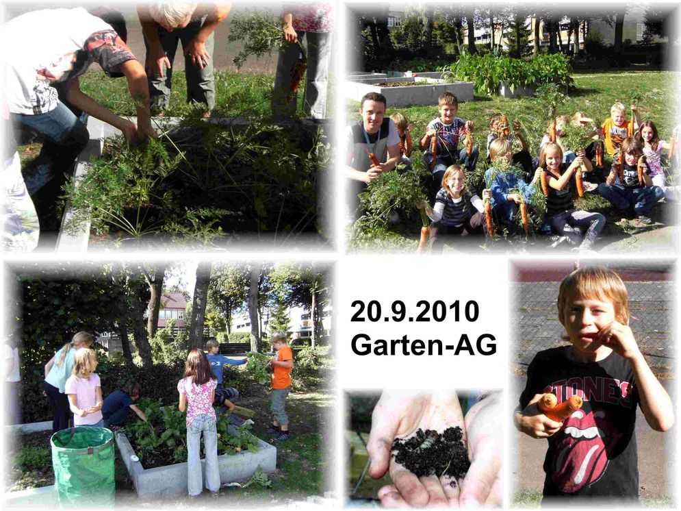 Bei schönstem Herbstwetter starteten wir (die Garten-AG) mit einer großen Ernteaktion in das Schuljahr 2010/2011. Wir durften das Gemüse ernten, welches unsere Vorgänger im zurückliegenden Schuljahr gepflanzt hatten. Besonders spannend fanden wir das Mohrrüben ziehen. In einem Wettbewerb haben wir ermittelt, wer die längste Karotte hat.