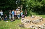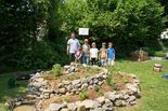 In Bietigheim-Bissingen im Steinbruch holten wir gleich große Steine und legten sie in einem Schneckengang auf den Kies. Beim Stapeln der Steine achteten wir darauf, dass die Steine fest aufeinander sitzen. Außerdem achteten wir darauf, dass die Mauer zur Schneckenmitte immer höher wird. Am Schluss füllten wir die Hohlräume zwischen den Mauern mit Kies Sand und Erde auf.