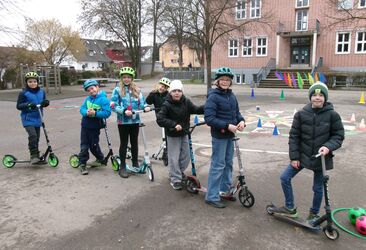 Am Dienstag hatten die Kinder im Neubau ihre Roller mitgebracht. Verschiedene Stationen stellten die Kinder immer wieder vor neue Herausforderungen. Mal mussten Formen abgefahren werden, mal ging es unter einem Seil durch und ….